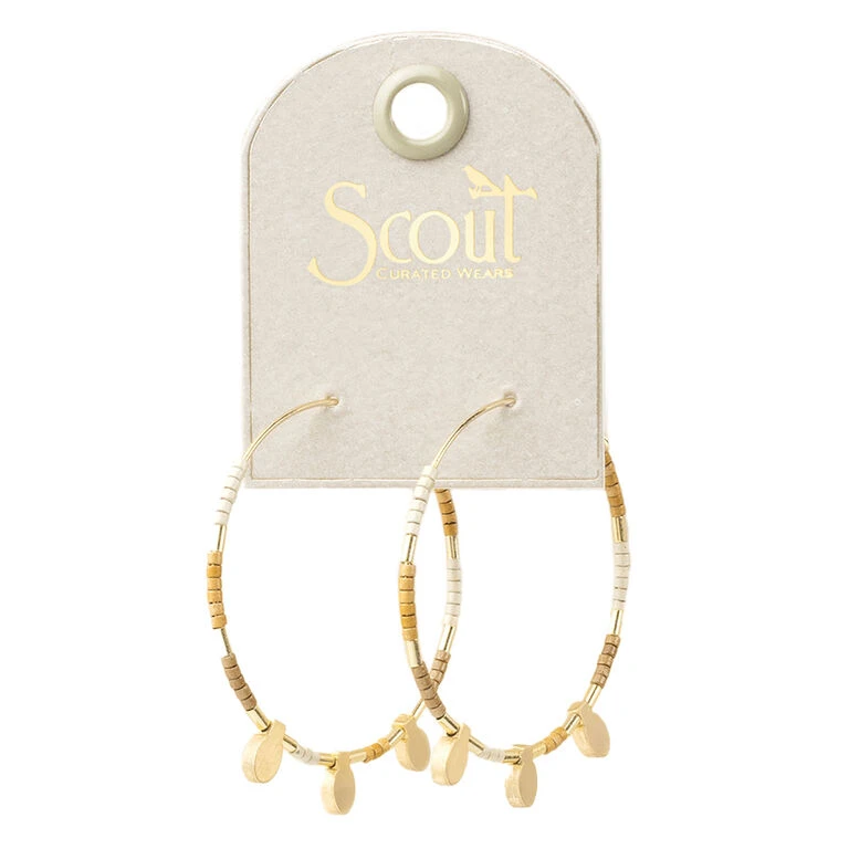 Elevate your perfectly stylish look with these beautiful hoop earrings from Scout Curated Wears. Featuring neutral Miyuki Delica beads and gold-plated brass beads, these earrings make the perfect gift for family, friends or yourself for any occasion. Add a bigger fashion punch with coordinating beaded bracelets (sold separately).