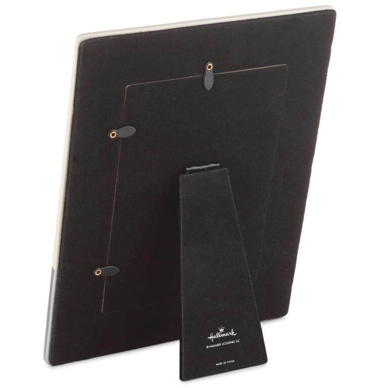 - Ceramic frame features silver metallic accents, embossed lettering and a linen texture.