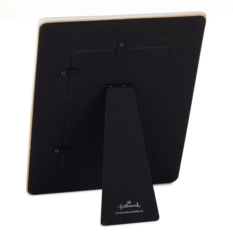 - Ceramic picture frame features a white background flecked with gray and a loving message about grandkids.