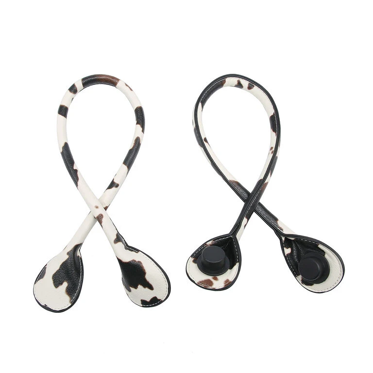 - Jen & Co. polyurethane leather straps in a white cow pattern.