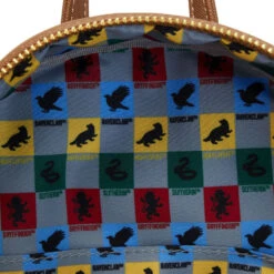 - Exterior features double zipper main compartment, Golden Snitch designed front zip pouch with wing attachments, and side slip pockets.